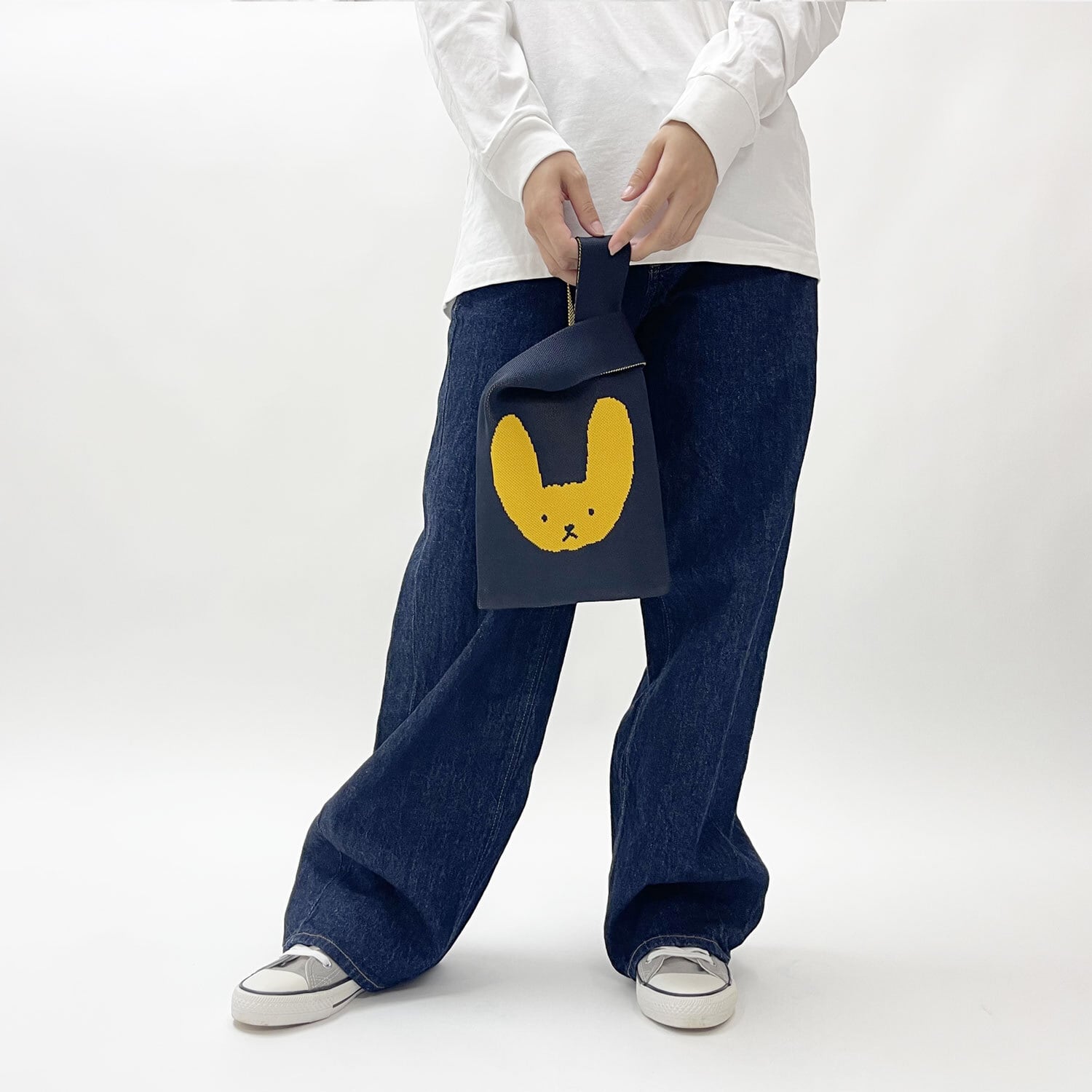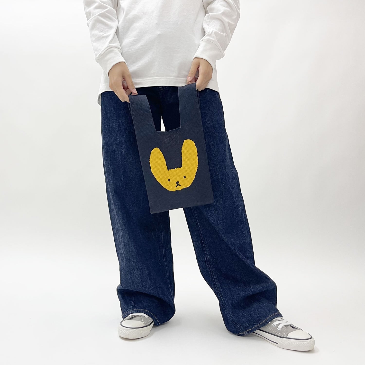 【JIN KITAMURA】KNIT MINI MARCHE BAG イエローのうさぎ ニット ミニマルシェバッグ