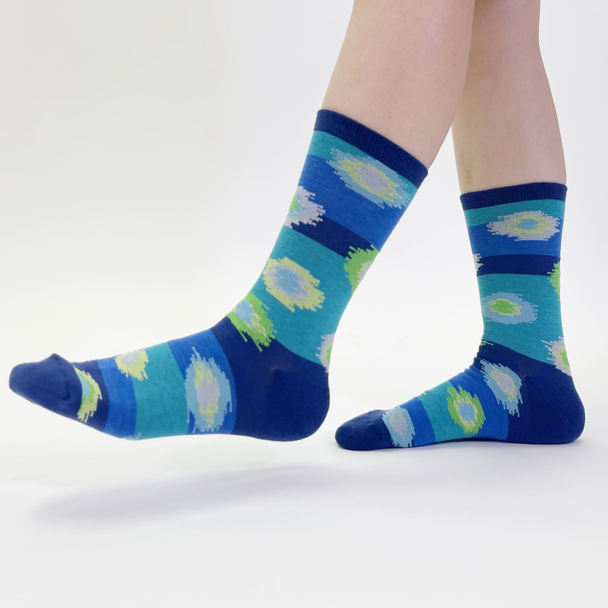 『IKAT STEPS』と題されたラインナップは、靴下を履いて歩く事や伝統から現代のライフスタイルをつなぐ歩みだったり、絣糸の動き(柄のズレ)のような意味合いが込められたソックスシリーズです。