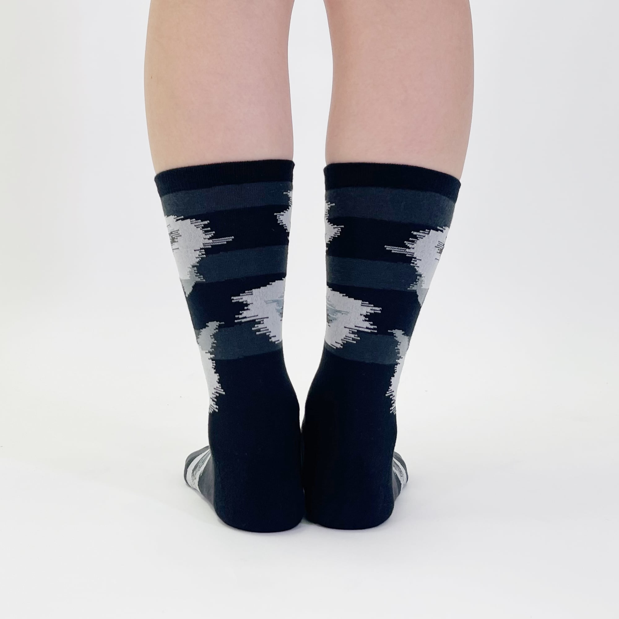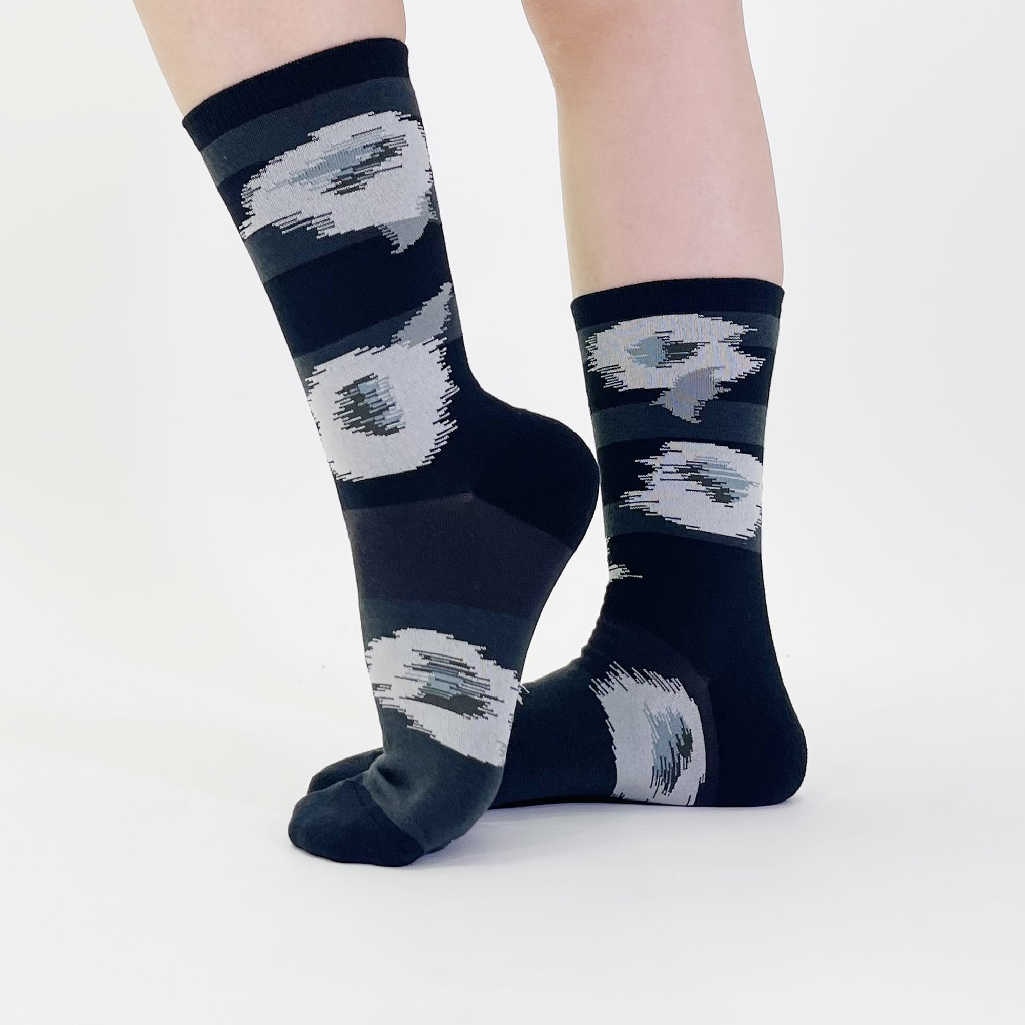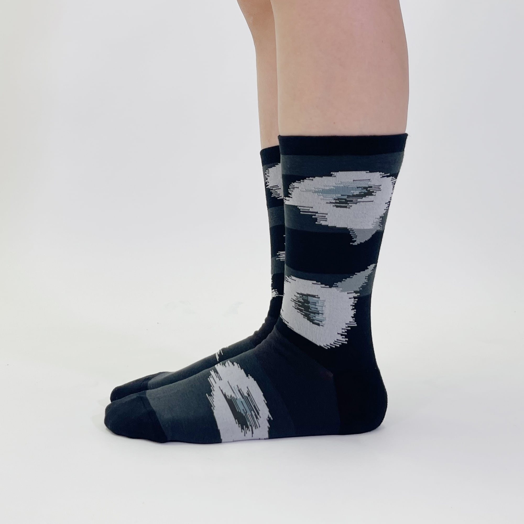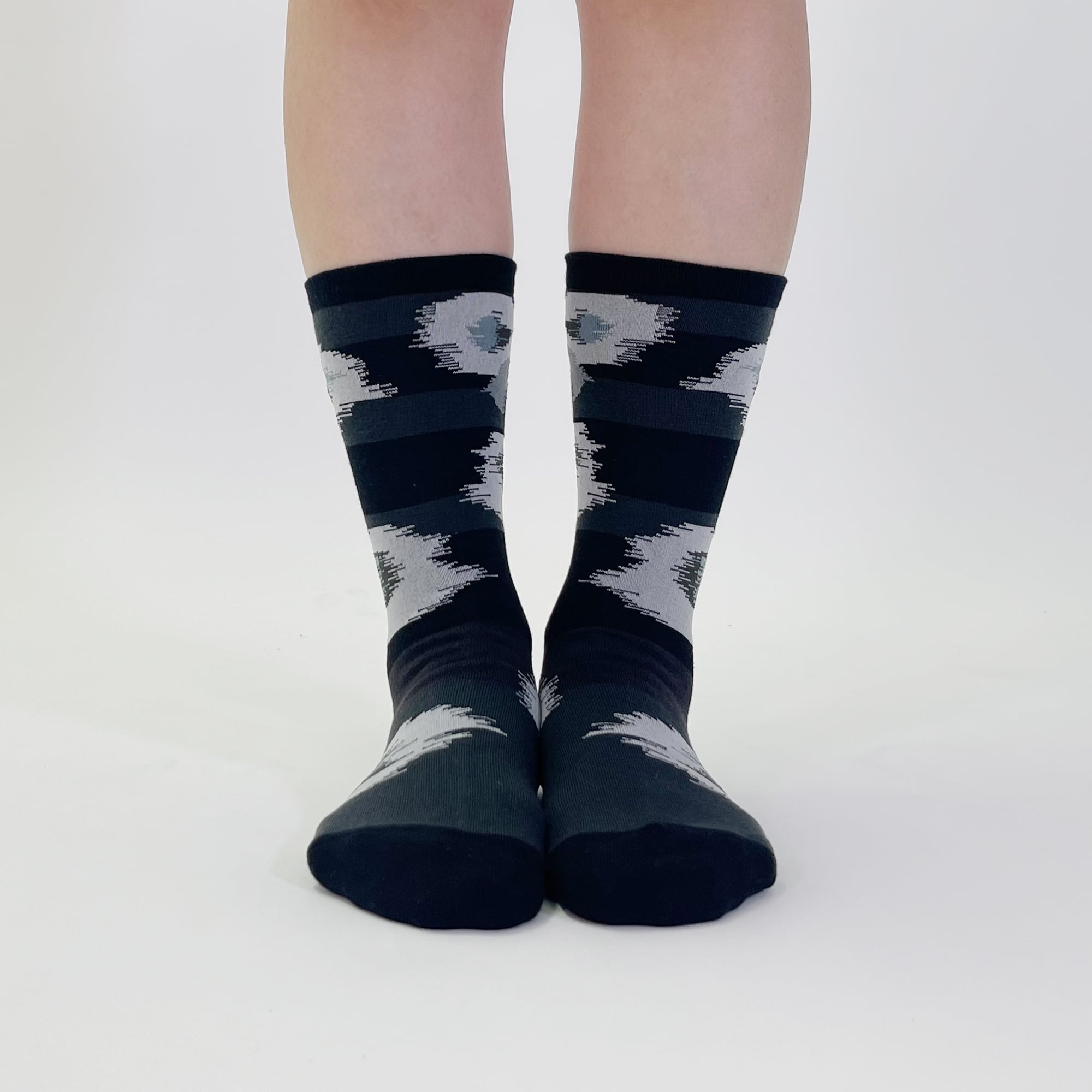 『IKAT STEPS』と題されたラインナップは、靴下を履いて歩く事や伝統から現代のライフスタイルをつなぐ歩みだったり、絣糸の動き(柄のズレ)のような意味合いが込められたソックスシリーズです。