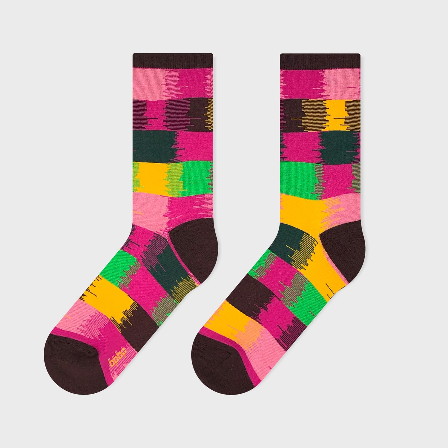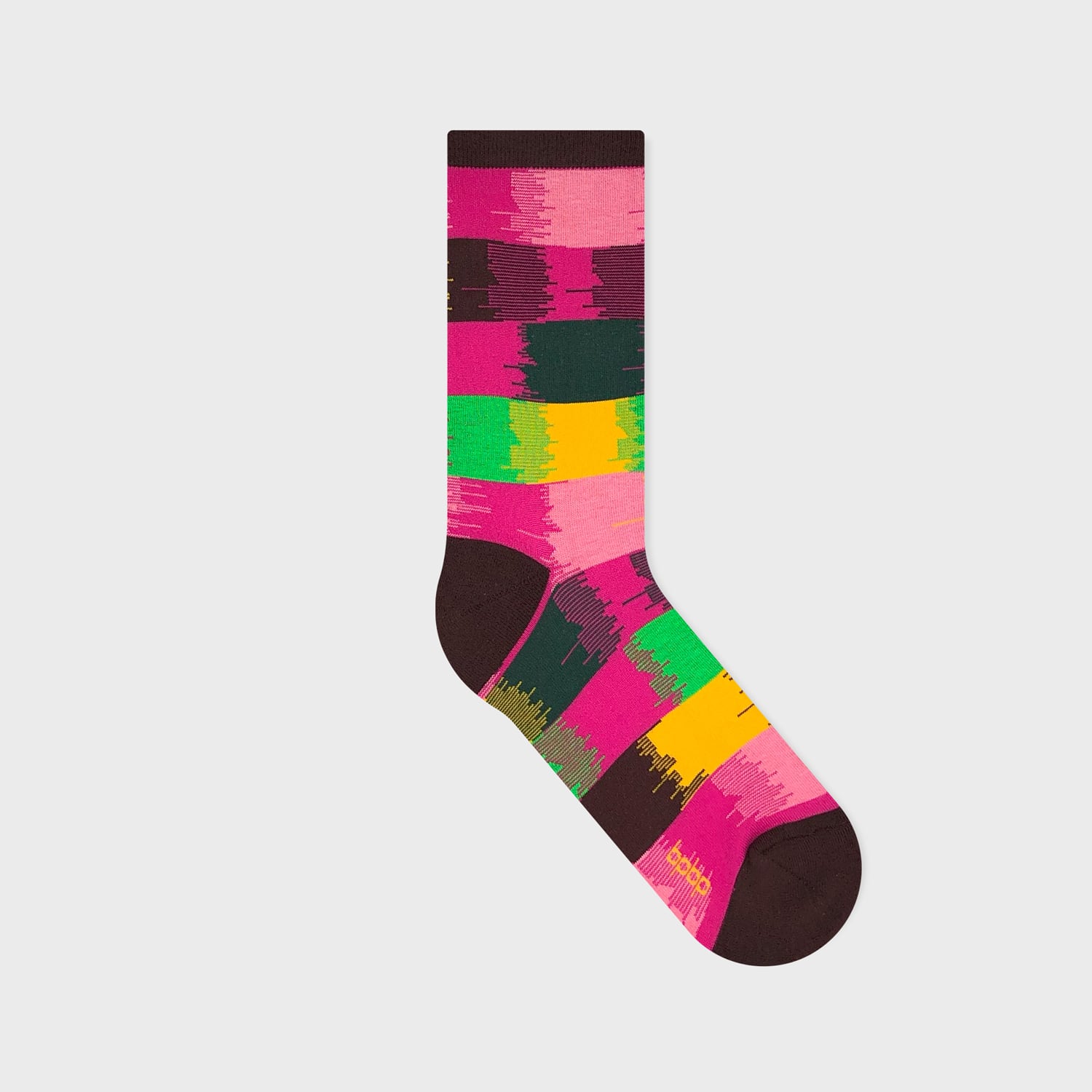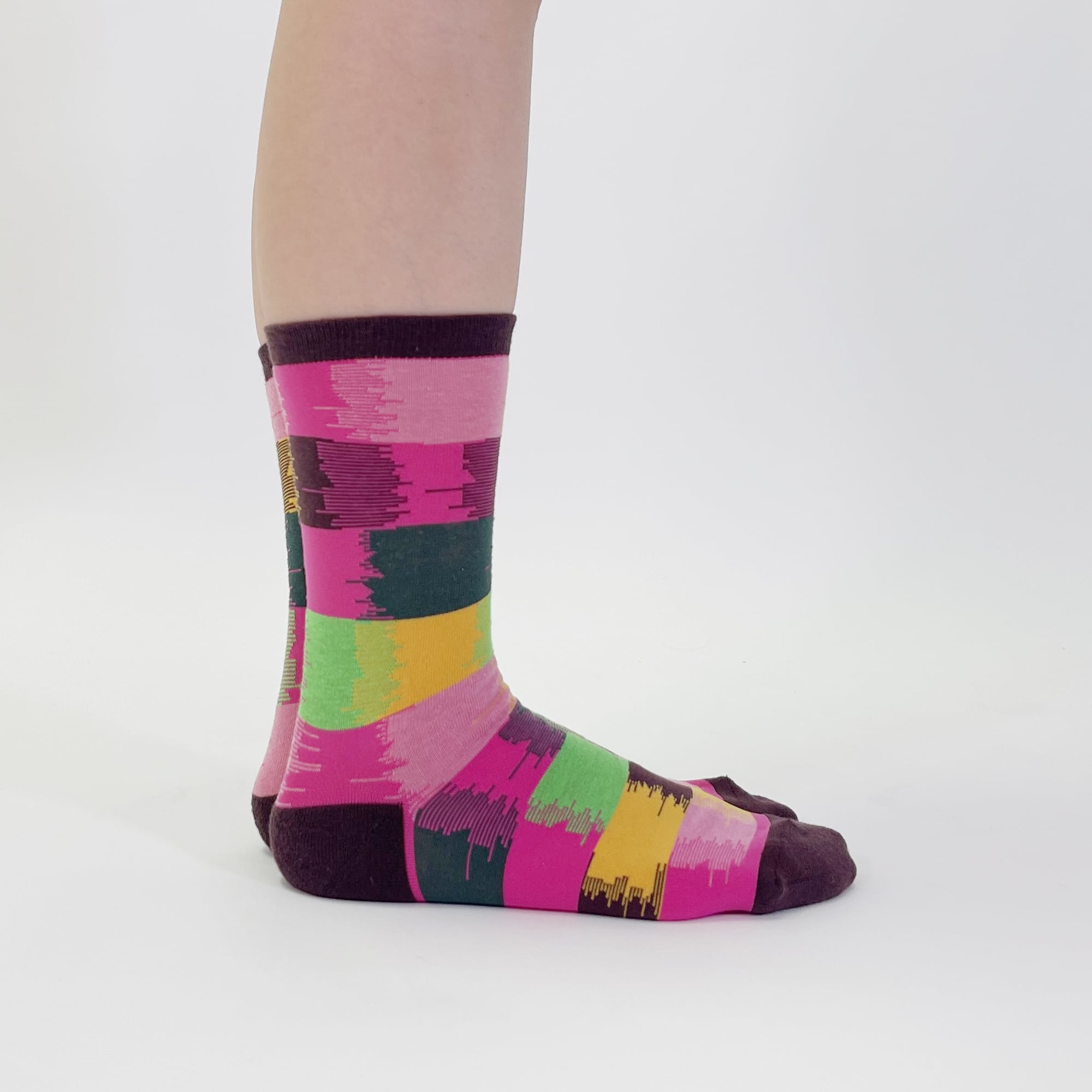 『IKAT STEPS』と題されたラインナップは、靴下を履いて歩く事や伝統から現代のライフスタイルをつなぐ歩みだったり、絣糸の動き(柄のズレ)のような意味合いが込められたソックスシリーズです。