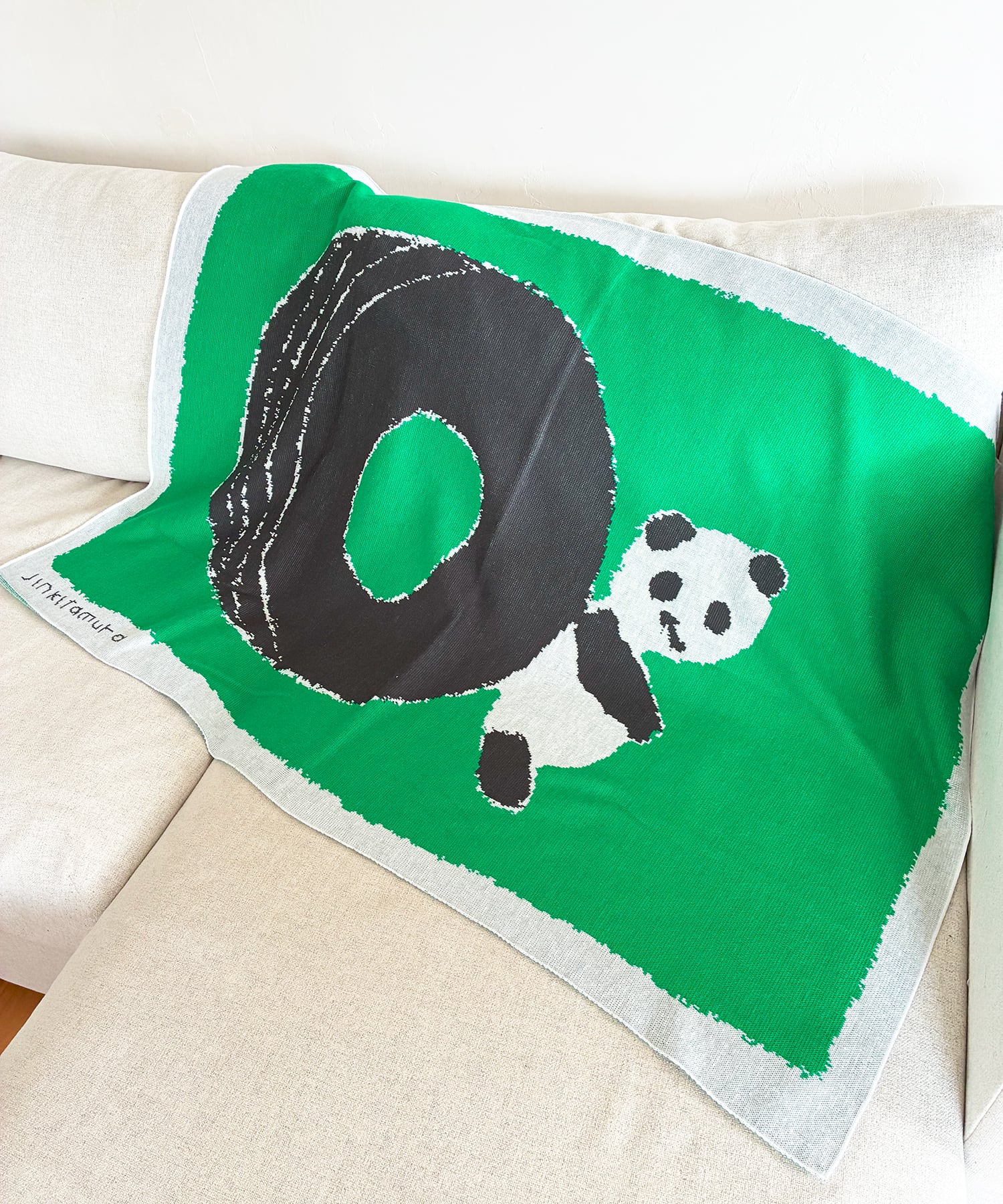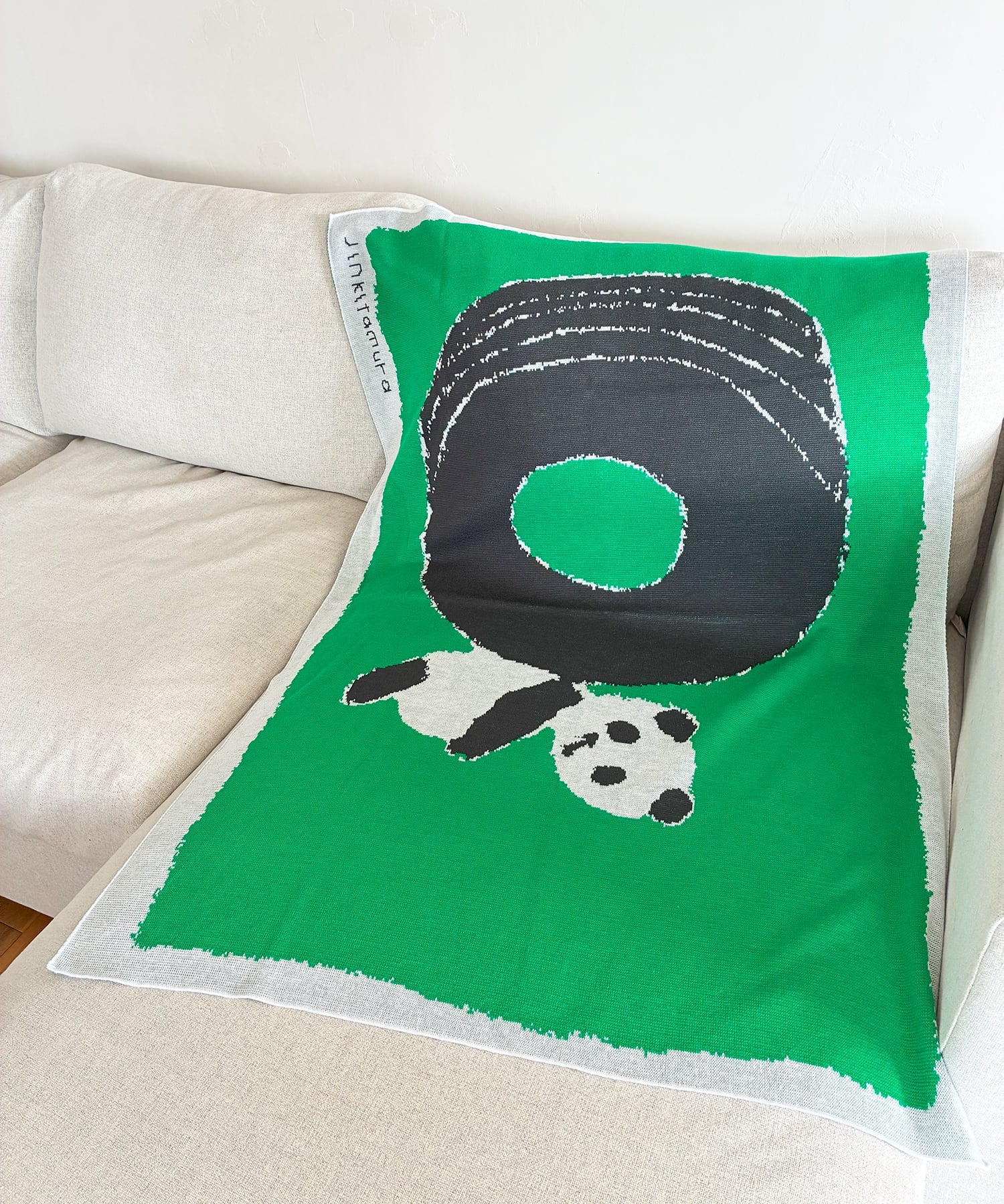 【JIN KITAMURA】北村人 KNIT BLANKET パンダとタイヤ ニットブランケット(120cm x 80cm)