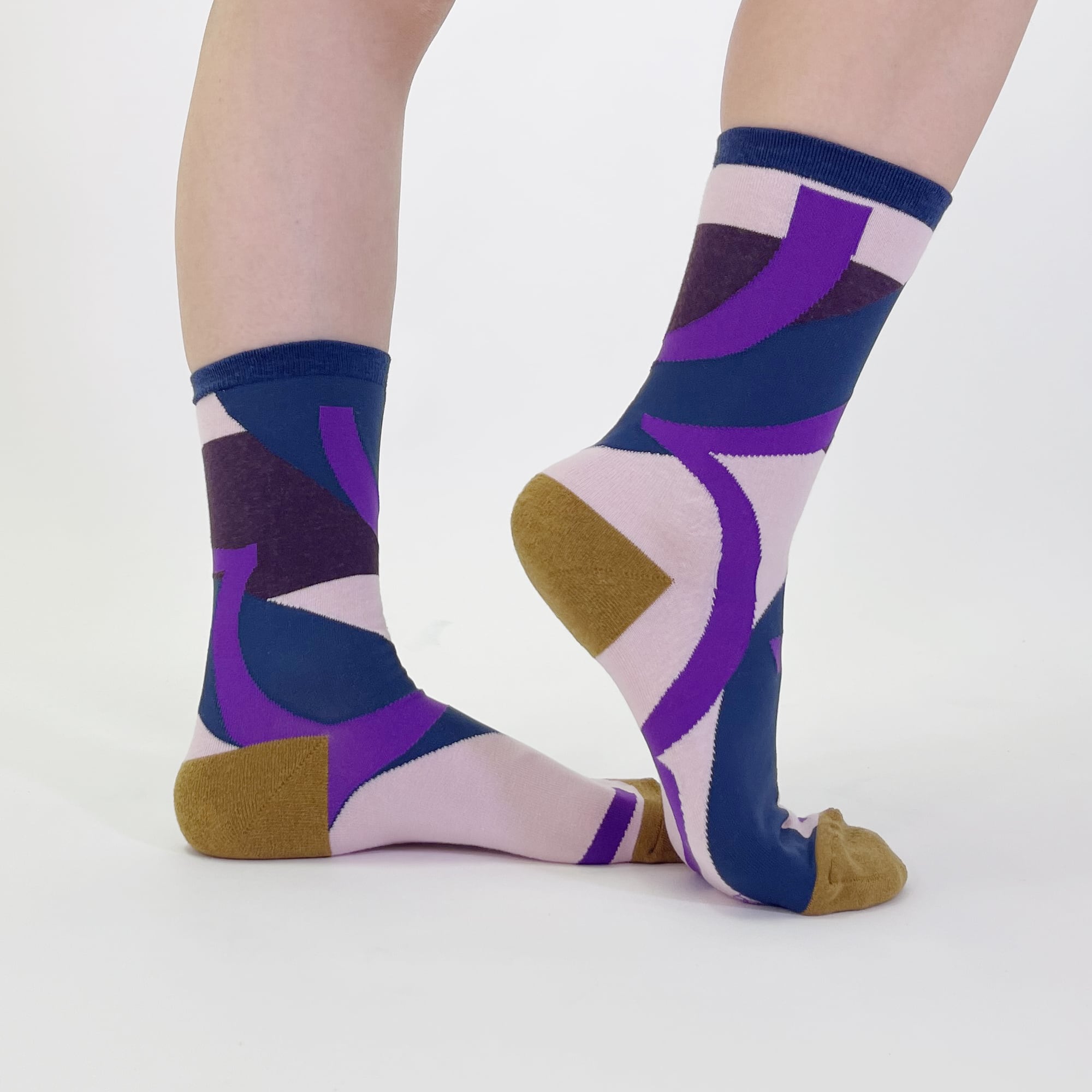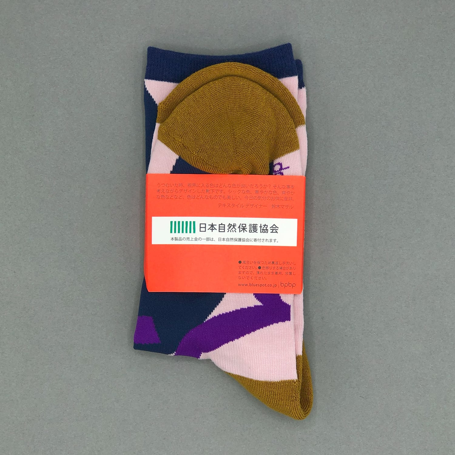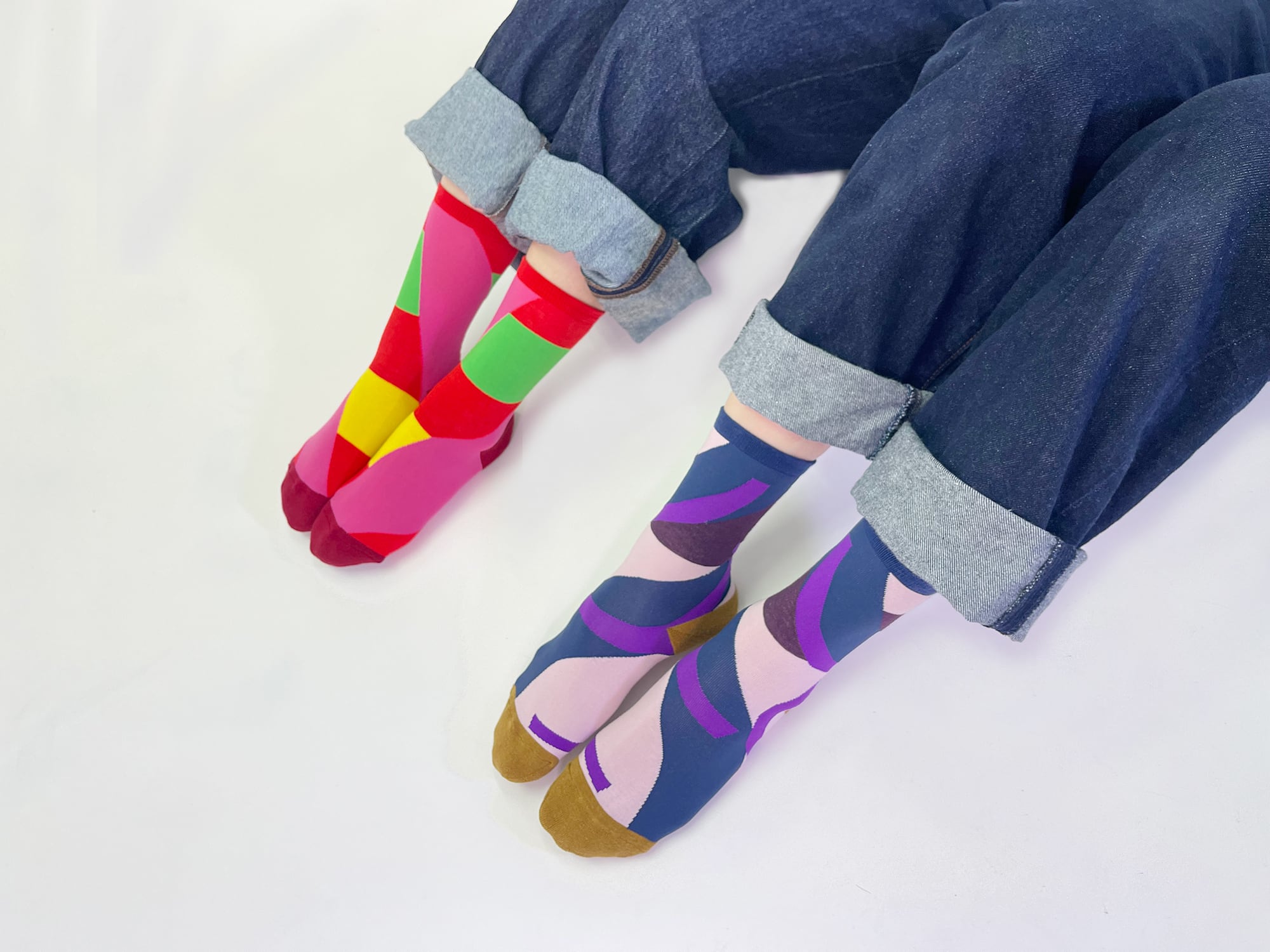 テキスタイルデザイナー 鈴木マサルさんが表現する色柄が再現されたソックス。