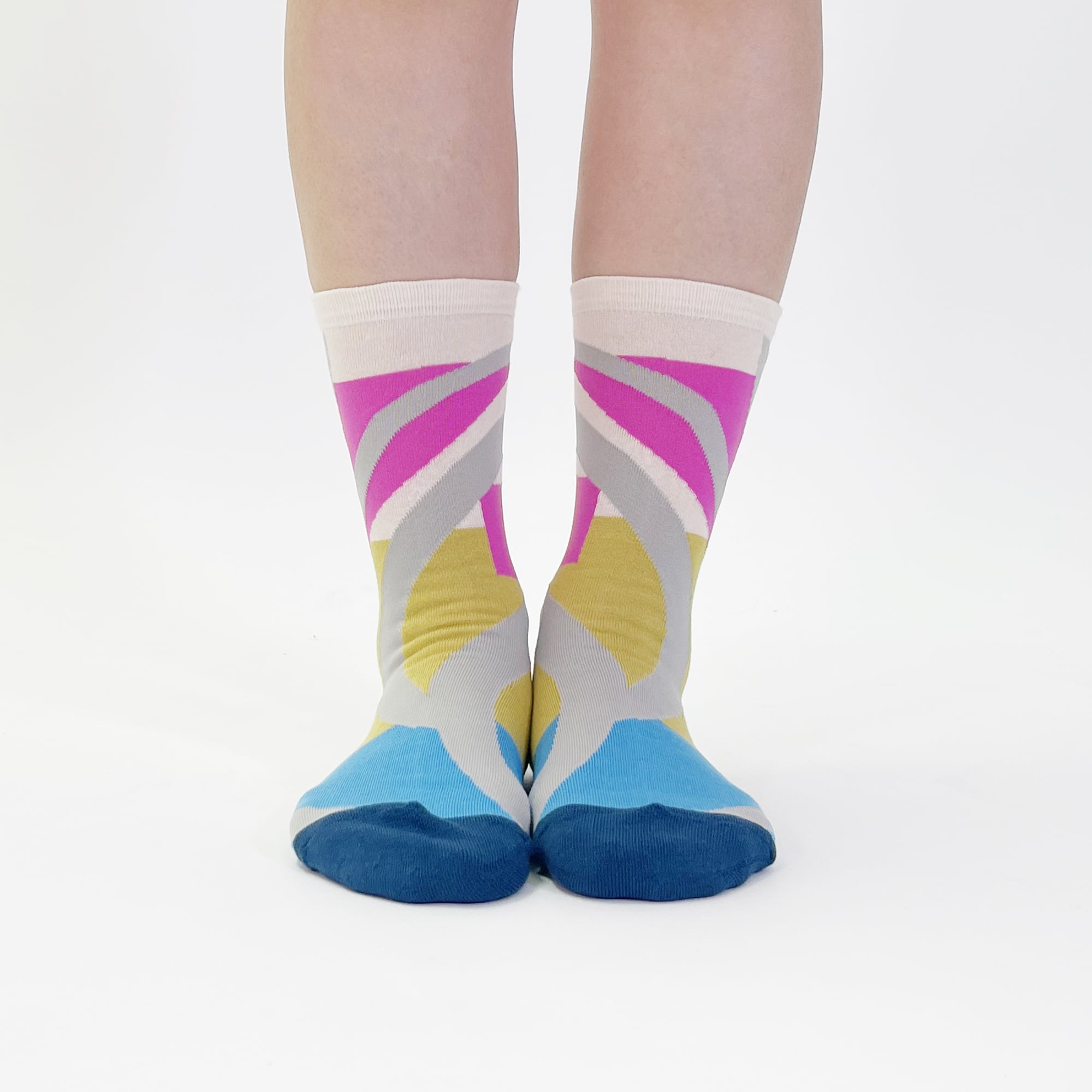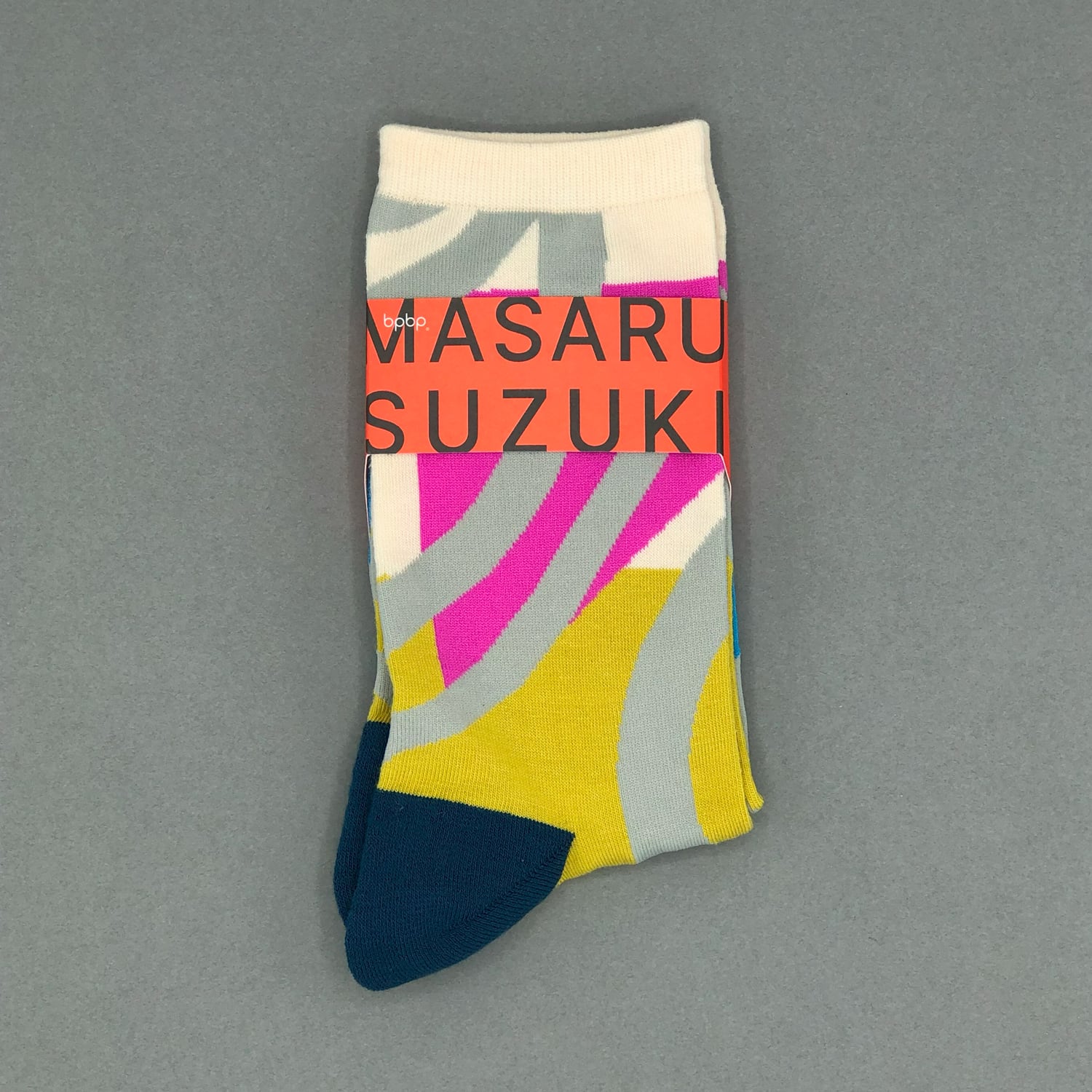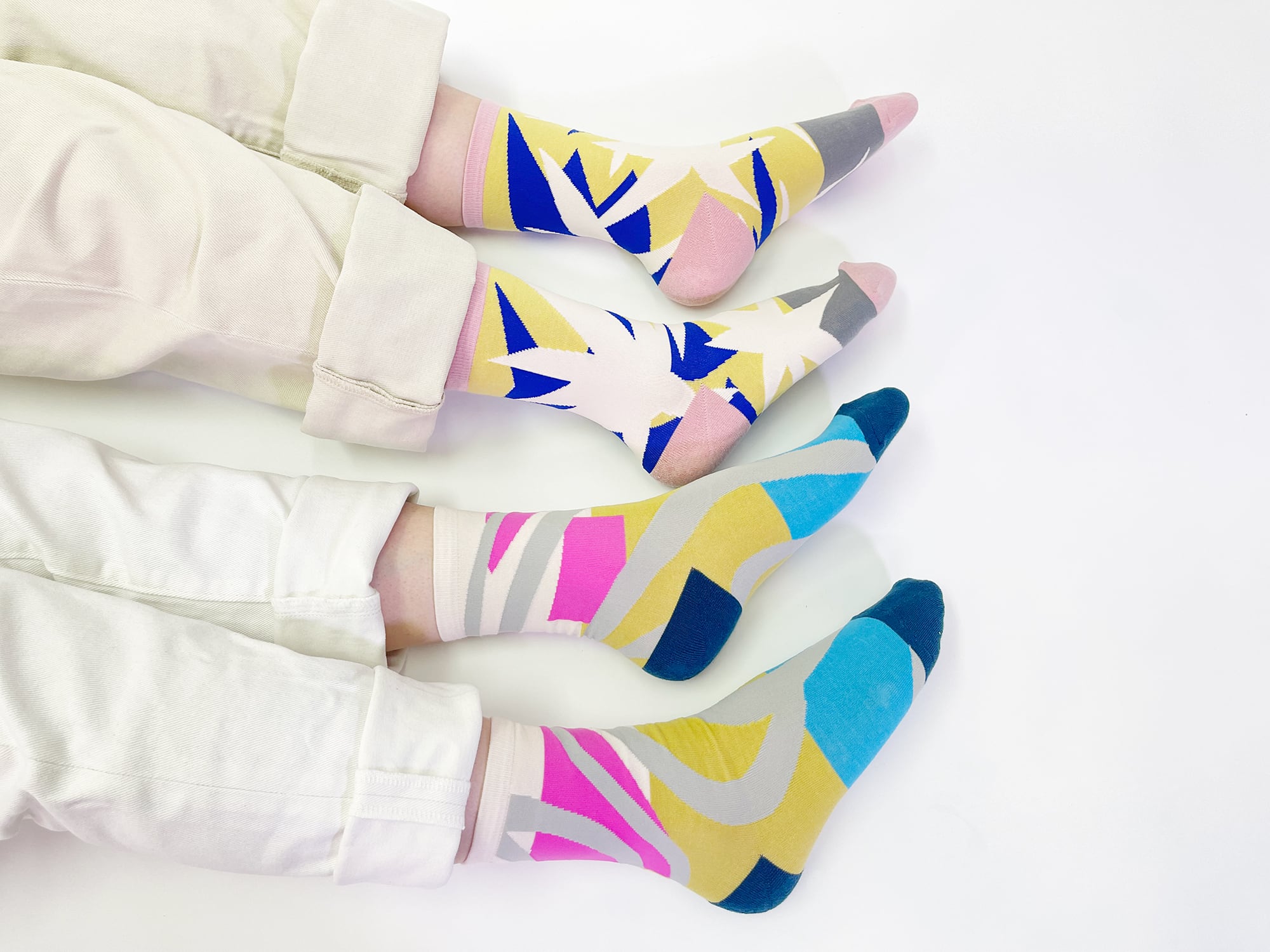 テキスタイルデザイナー 鈴木マサルさんが表現する色柄が再現されたソックス。