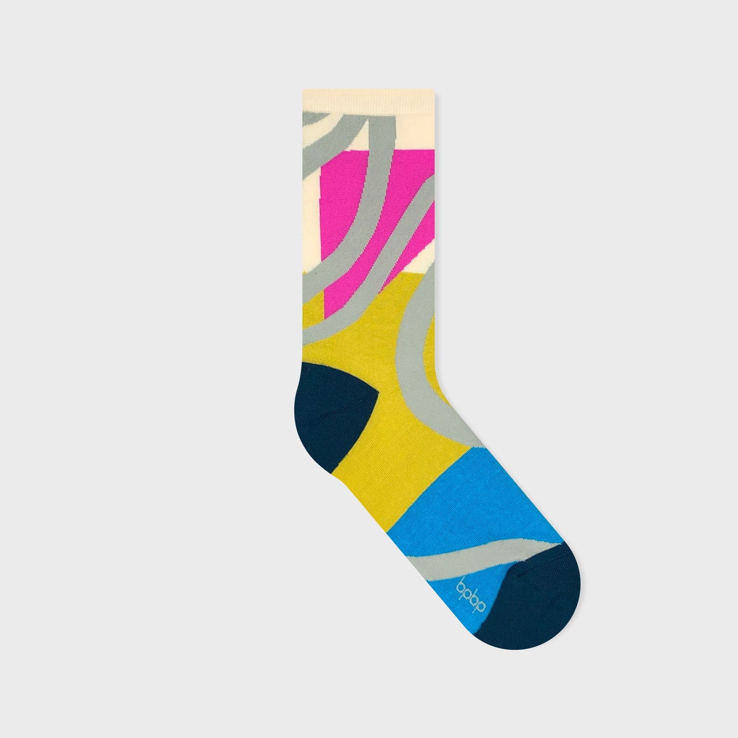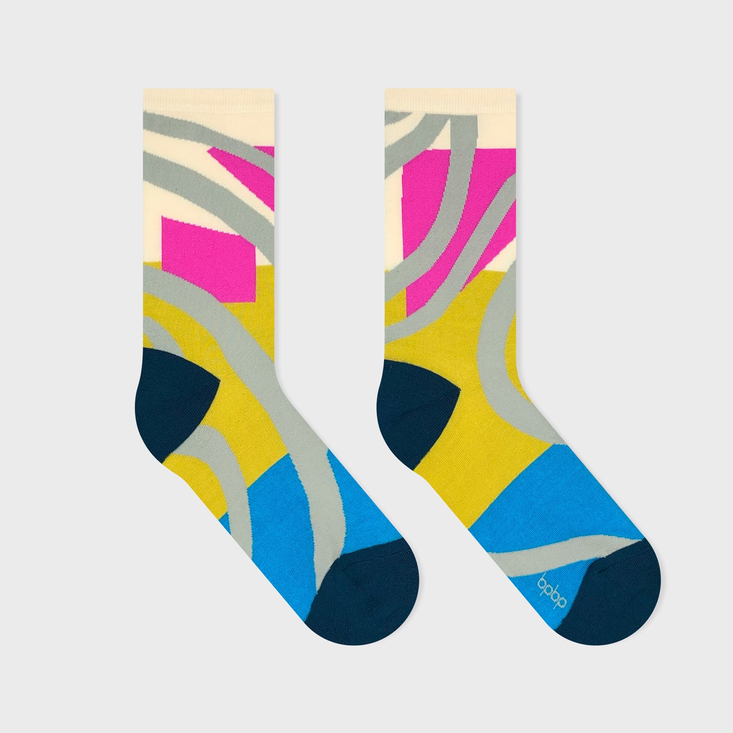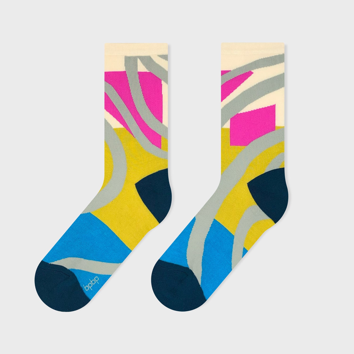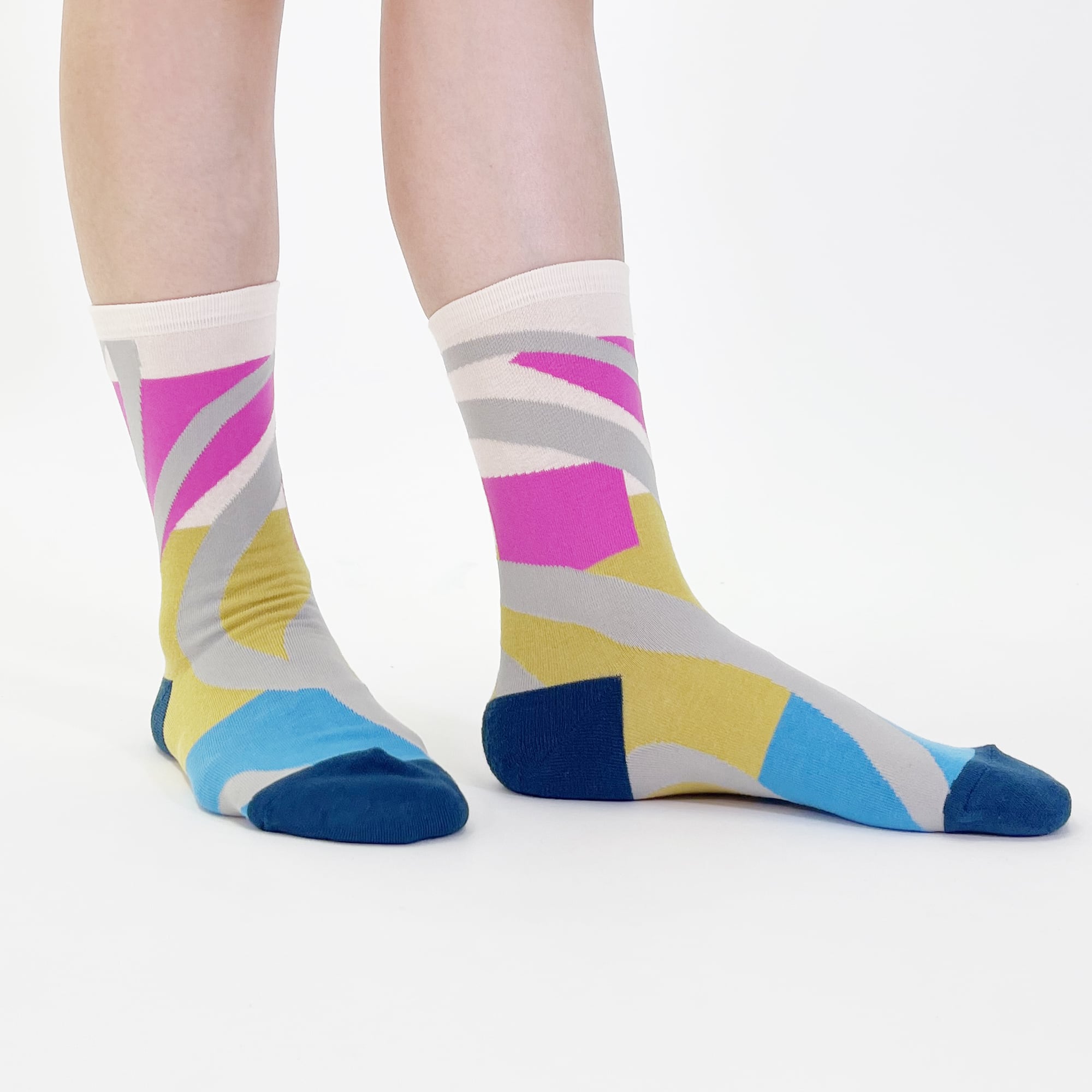 テキスタイルデザイナー 鈴木マサルさんが表現する色柄が再現されたソックス。
