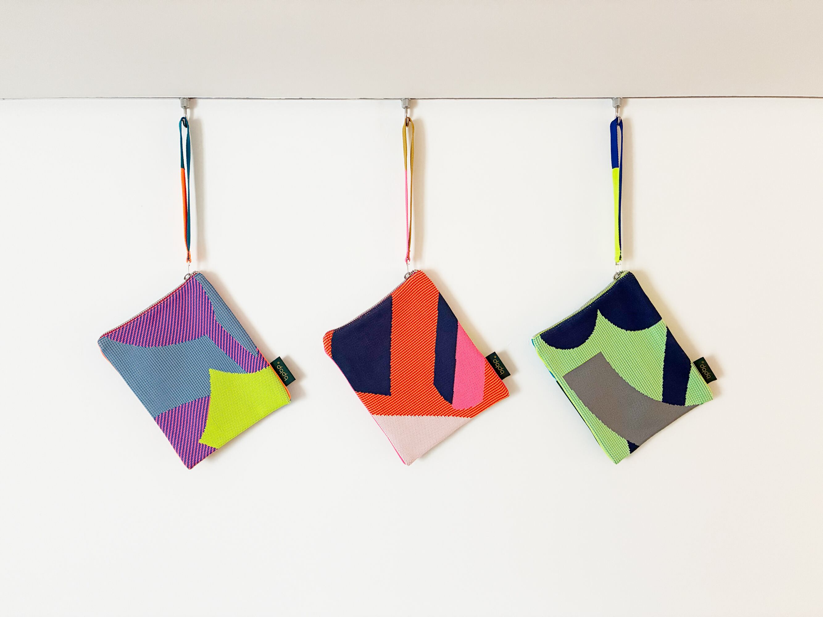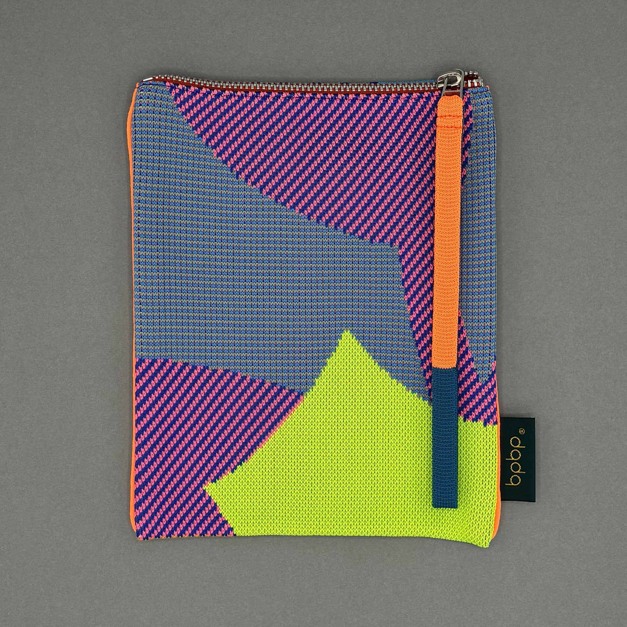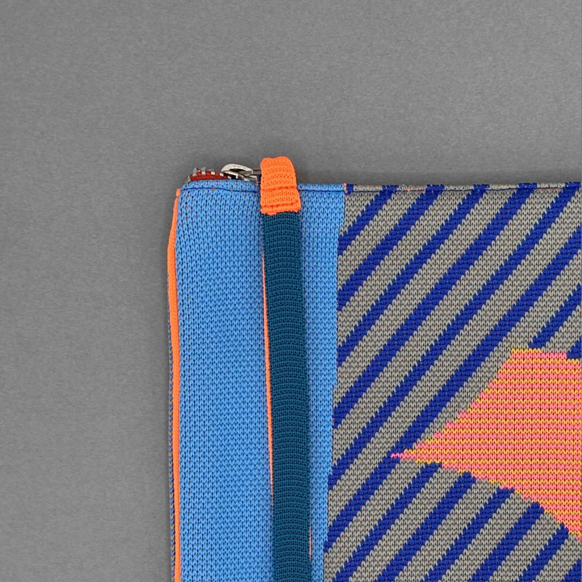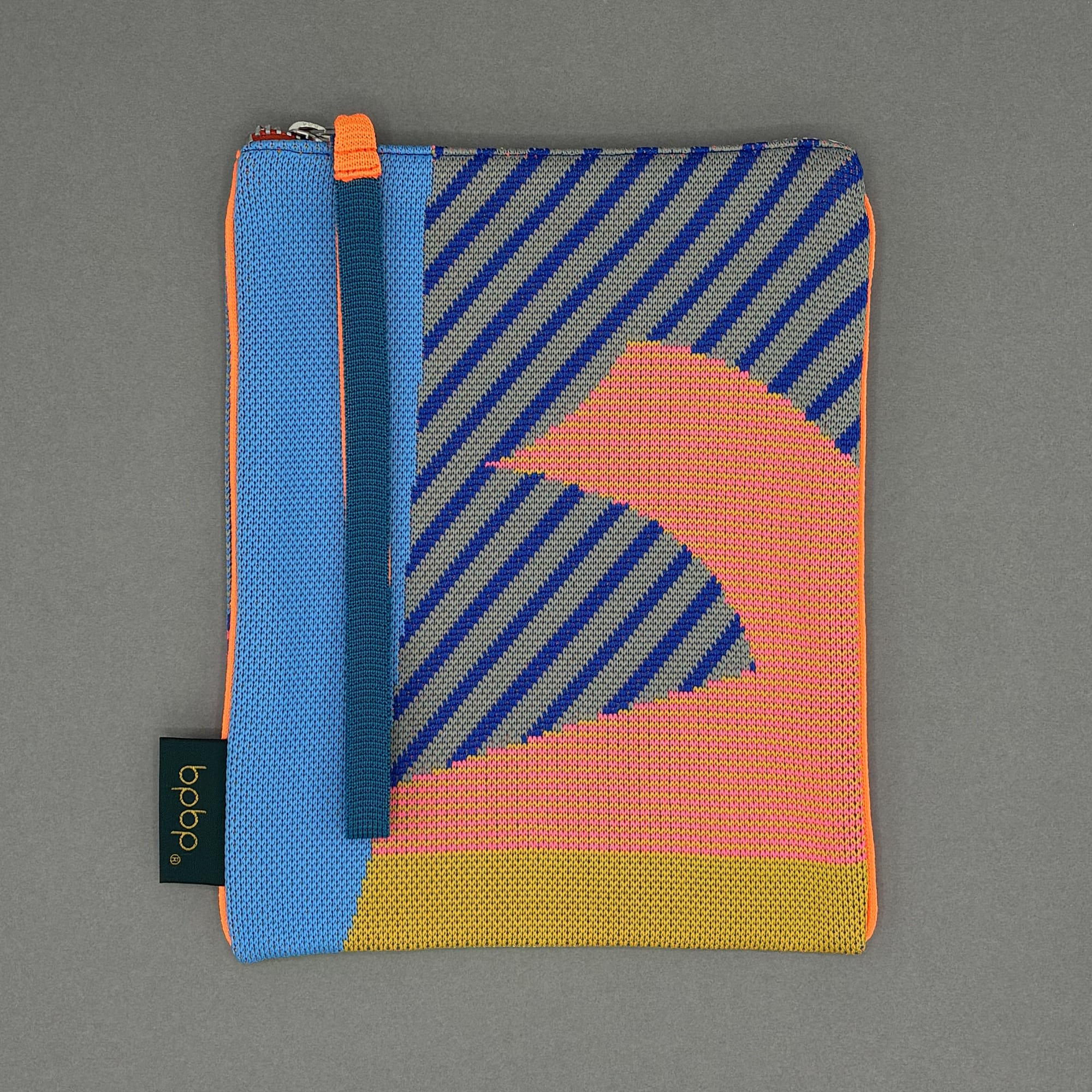 テキスタイルデザイナー 鈴木マサルさんが表現する色柄が再現されたパイピング ハンドストラップ ニットバッグ。
