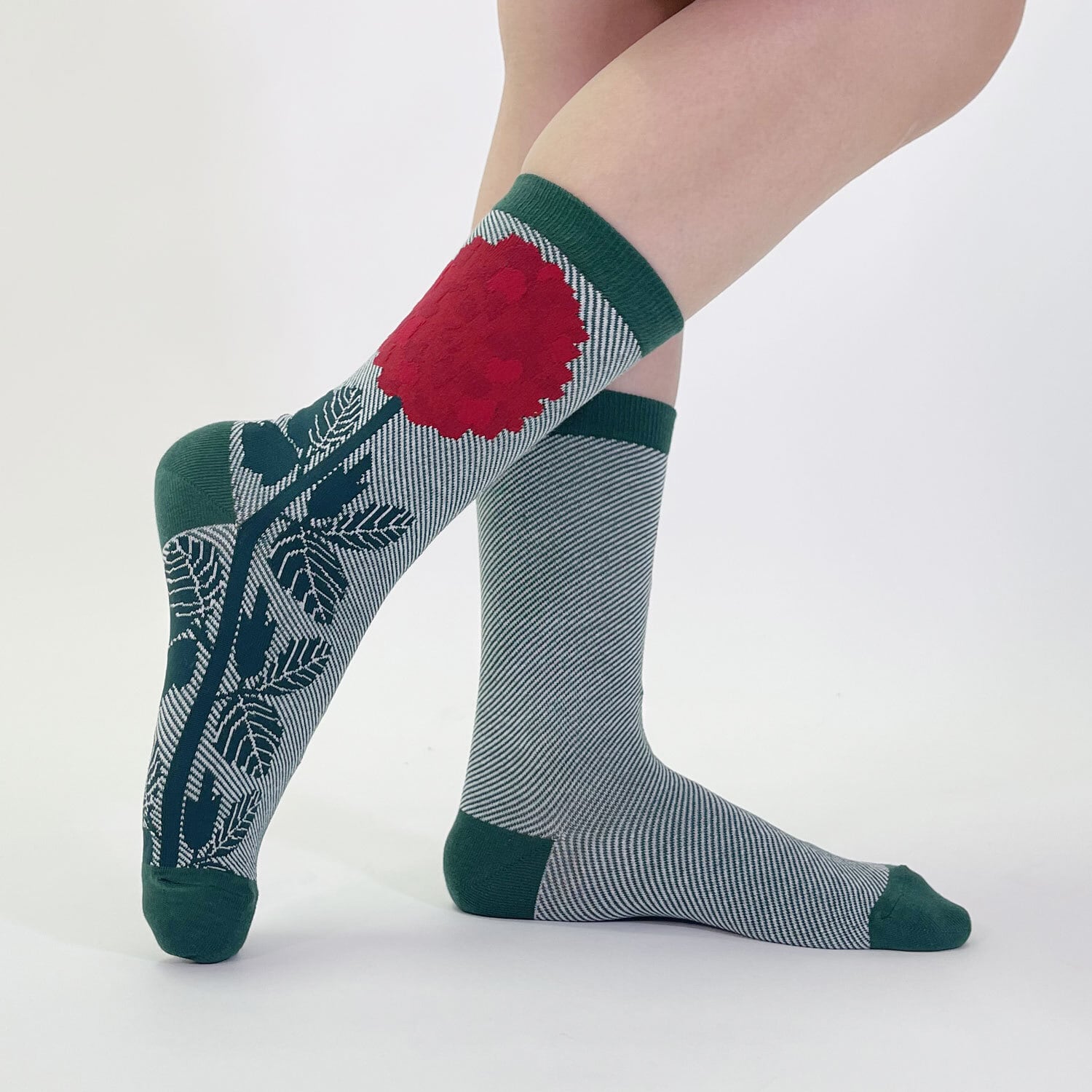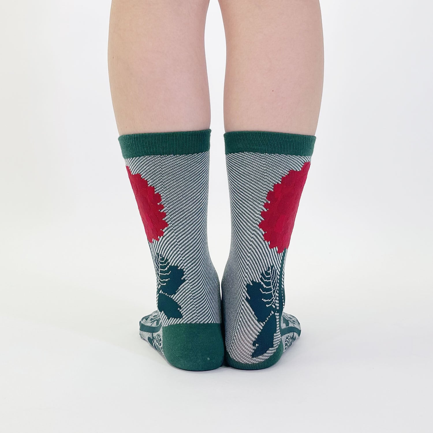 氷室友里さんオリジナルの、フラワーモチーフのBLOOMコレクションのテキスタイルがソックスに再現されたラインナップです。