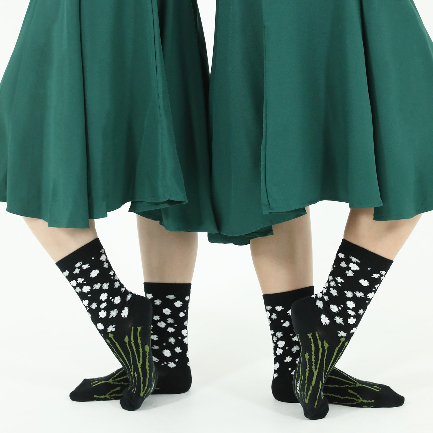 氷室友里さんオリジナルの、フラワーモチーフのBLOOMコレクションのテキスタイルがソックスに再現されたラインナップです。