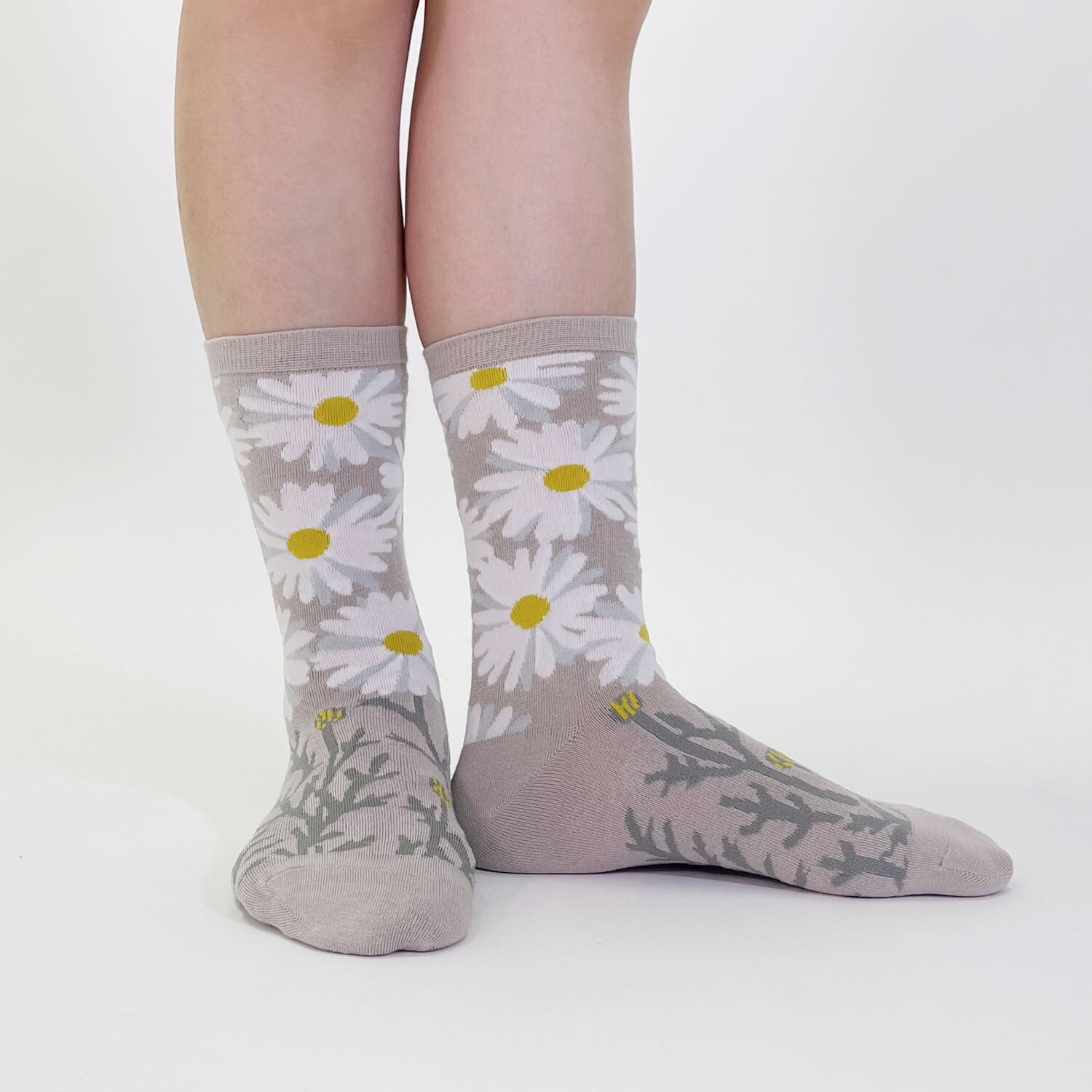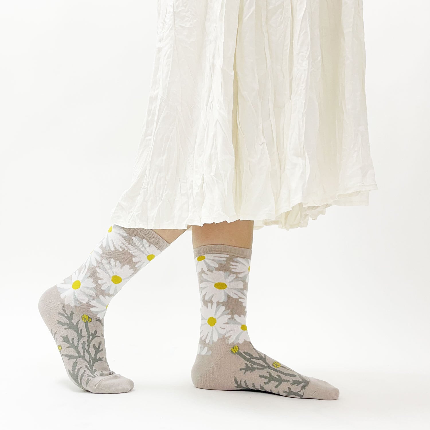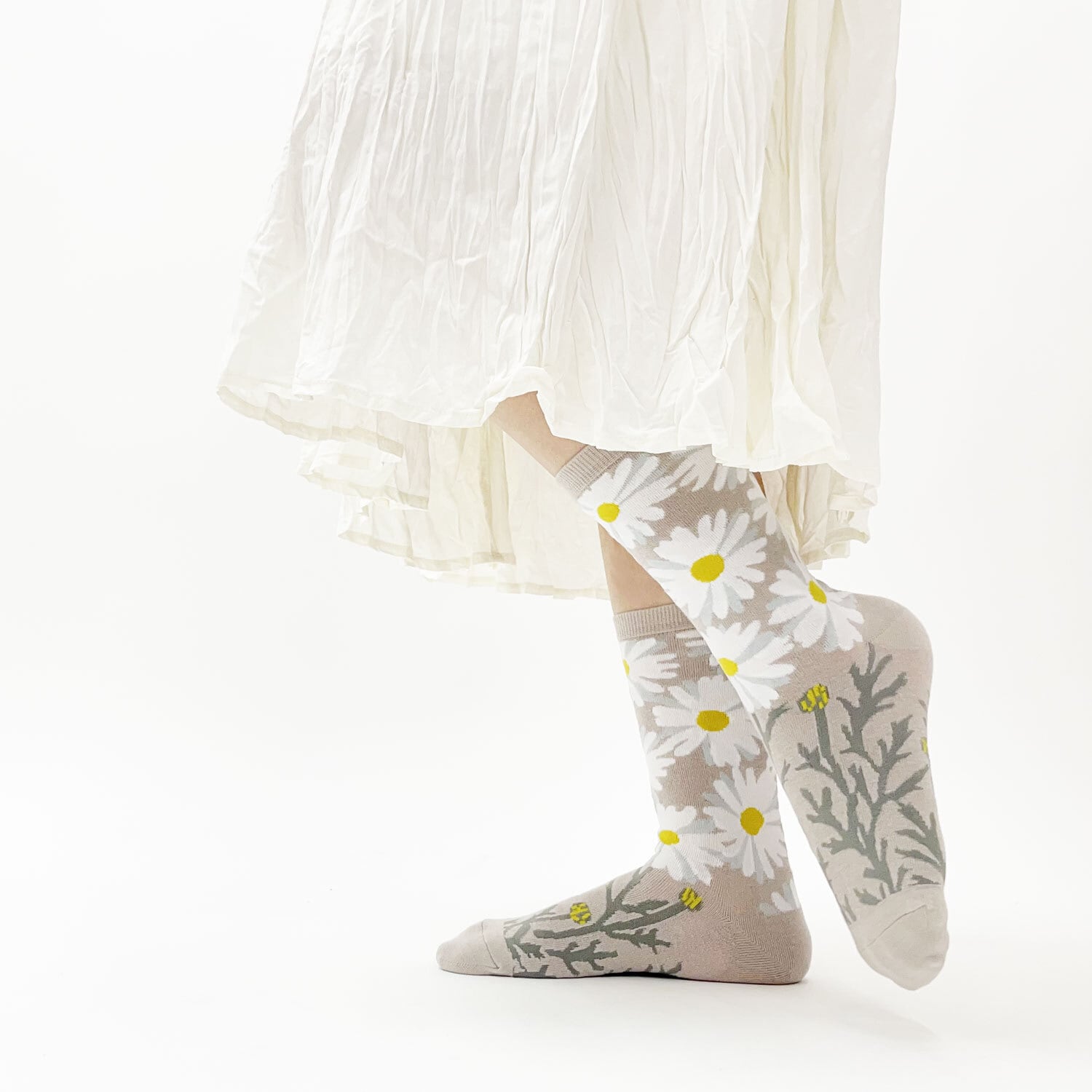 氷室友里さんオリジナルの、フラワーモチーフのBLOOMコレクションのテキスタイルがソックスに再現されたラインナップです。