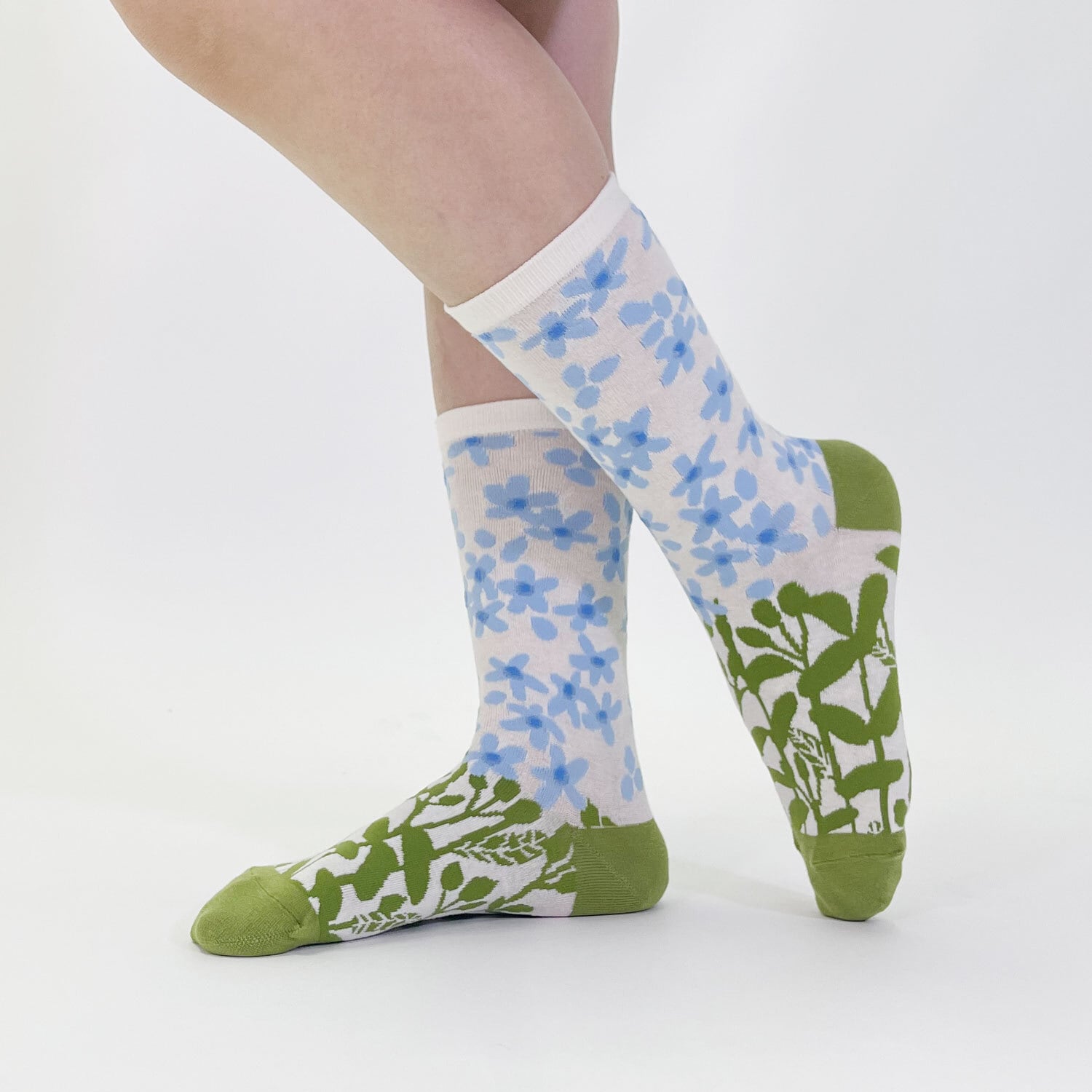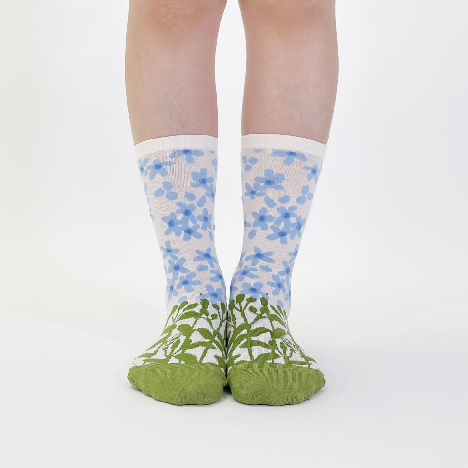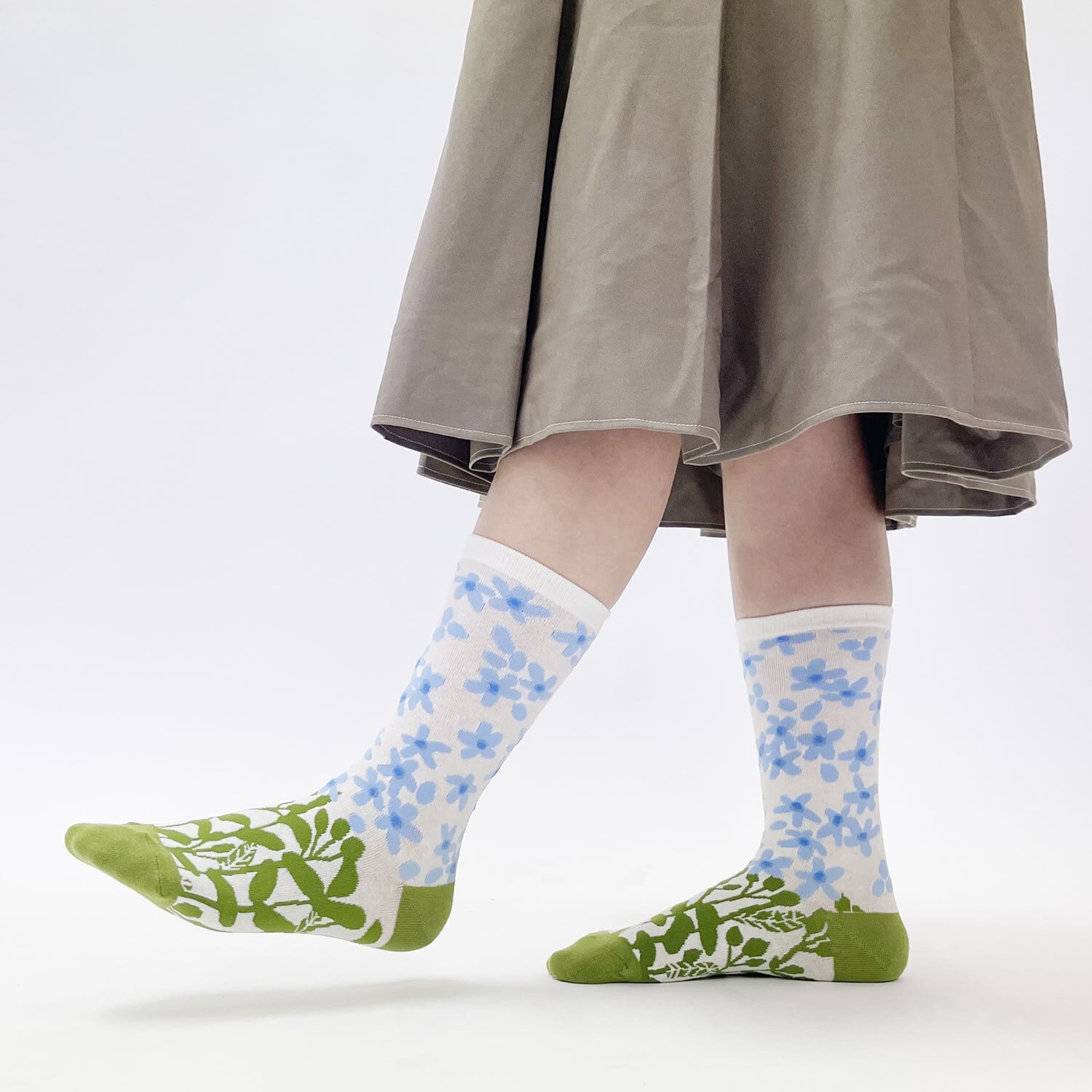 氷室友里さんオリジナルの、フラワーモチーフのBLOOMコレクションのテキスタイルがソックスに再現されたラインナップです。