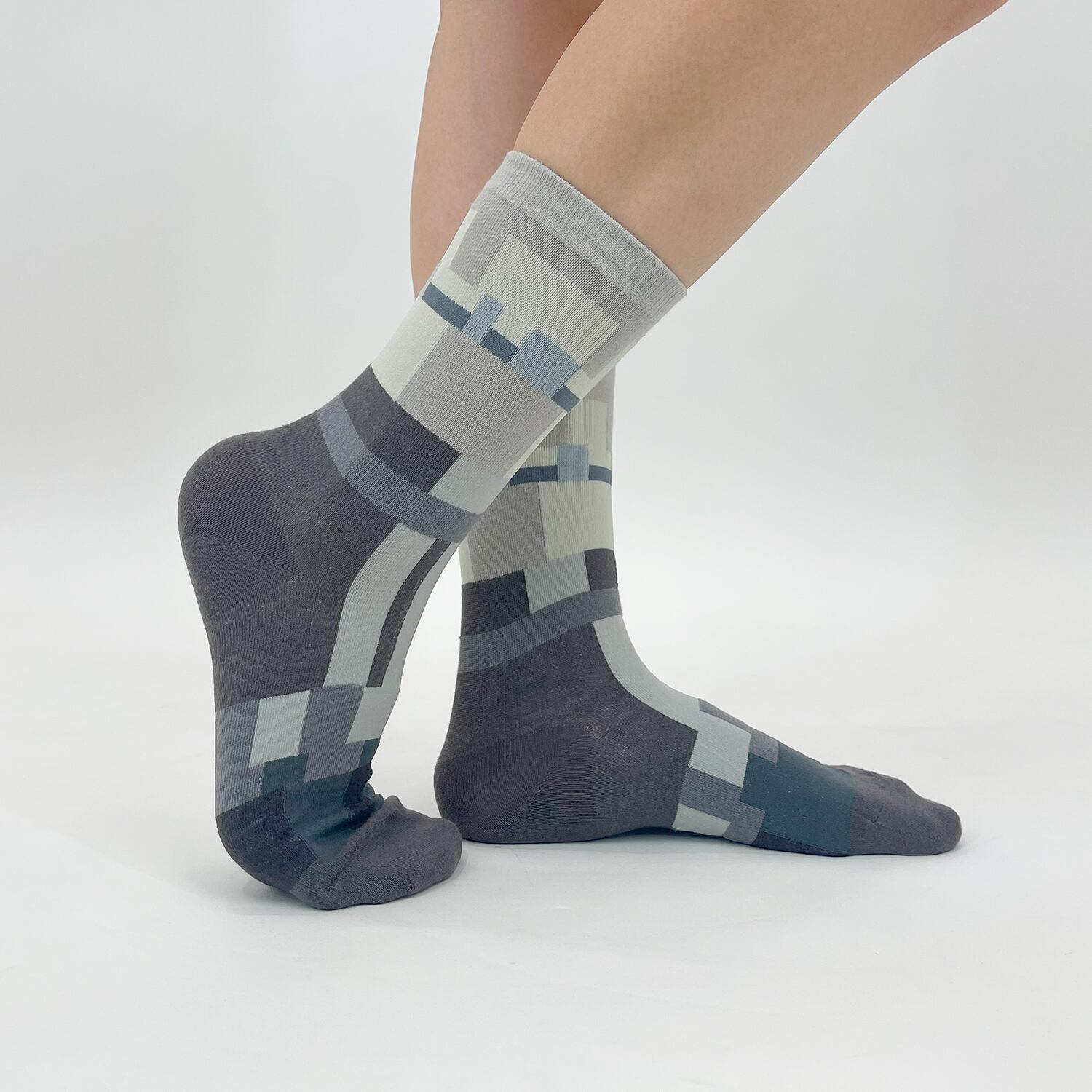 テキスタイルデザイナー 鈴木マサルさんが表現する色柄が再現されたソックス。